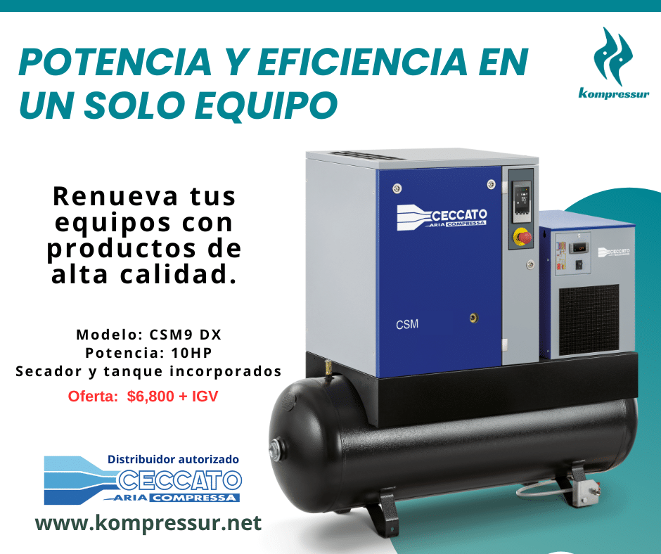 Somos distribuidores exclusivos de la marca Ceccato Aria Compressa en el Perú. Además, somos el principal aliado de nuestros clientes en la productividad y sostenibilidad de su actividad industrial, mediante compresores de aire, secadores y accesorios de última generación, y el mejor servicio de mantenimiento a nivel nacional.